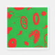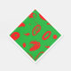 Este guardanapo de papel exibe linhas vermelhas e manchas artísticas em um plano de fundo verde. O quadro inteiro lembra os tempos de Natal.