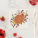Folhagem russa de outono e quadro floral, guardanapos de papel personalizados. O modelo de estilo design moderno fornece linhas para nomes e data no quadro redondo laranja queimado.