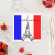 Os guardanapos com bandeira francesa e a torre Eiffel com as palavras, profiter de la nourriture , apreciam a comida.
