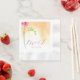 O tronco de Freesia Rosa Quente é impermeável em uma lavagem solar tropical de textura. A tipografia graciosa personaliza-se elegantemente com as iniciais do casal e a data do casamento.