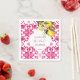 Fuchsia Majolica magenta azulejos com um monte de limões guardanapos personalizados para chá de noiva.