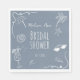 These Fun Beach Doodle Illustrations Bridal Shower Napkins feature a charming dusty blue background adorned with whimsical white coastal doodles, including waves, seashells, starfish, sunglasses, sparkles, and playful beach-inspired scribbles. The fun and airy design adds a lighthearted seaside feel to your bridal shower celebration, making them perfect for coastal, nautical, beach, or summer-themed events. Fully editable text and colors allow you to personalize the napkins to match your shower aesthetic, creating a cohesive and memorable tablescape for your special day.