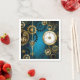 Turquesa, texturizada, fundo steampunk com latão e engrenagens douradas, chave prateada e relógio. Estilo Steampunk.