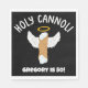 Estes guardanapos são perfeitos para festas de aniversário e muito mais. Eles apresentam o slogan HOLY CANNOLI acima uma ilustração de um cannoli com asas halo e anjo. Sua mensagem personalizada aparece abaixo do gráfico. O texto em branco a negrito é colocado sobre um fundo preto.