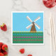 Um moinho de vento entre flores amarelas vermelhas e cor-de-rosa das tulipas. Esta design parece realmente eficaz nestes Napkins de Papel
