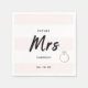 Este futuro chico, moderno, de 3 faixas A Sra. Blush Pink White Stripes Dourado Livro Diamante Napkin apresenta um anel de diamante de ouro brilhante na parte inferior, e em lindos, modernos, negros serif e grandes escritos negros, a expressão: "Sra. Futura" e você adiciona seu novo nome casado e data de casamento sob isso. Um na moda, uma maneira divertida de celebrar o seu próximo casamento.