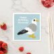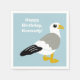 Estes guardanapos de papelão estão prontos para serem personalizados com sua própria mensagem. Eles apresentam uma ilustração do estilo de desenho animado de um conjunto de gaivotas contra um fundo azul claro. Sua mensagem aparece em letras brancas em negrito.