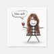 Garota pegajosa vestindo vestido de xadrez de búfalo com cabelo, óculos e segurando um copo de vinho tinto para a festa do coquetel. O texto na bolha de fala pode ser editado.
