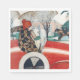 Guardanapo De Papel Garota e Cachorro num Automóvel Vermelho