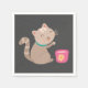 Um desenho animado de gato bonito e agradável com um teacup rosa. Design para crianças de cor pastel para um presente para crianças ou decor para crianças. Cinza em alguns produtos. Tema animal bonito. Gatinho adorável.
