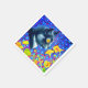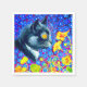 Napkins com a pintura animal de Louis Wain Cat no Mar de Flores (1860-1939). Um gato preto e branco com olhos ouros cheira a flores amarelas. No fundo roxo estão flores azuis. Um presente maravilhoso para amantes de gatos e arte inglesa.