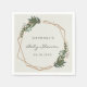 Boho guardanapos de chá de fraldas neutro com seu nome, título do evento e dentro de data de um quadro geométrico de ouro moderno cercado por verde e flores brancas. Um elegante design botânico perfeito para uma celebração boêmica no verão. Esta design neutra de gênero é excelente se você está tendo um filho ou uma garota. Quadro cortesia de:<a href="http://www.freepik.com">Concebida por Freepik</a>