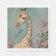 Uma girafa majestosa se posiciona entre as flores lavandas colocadas contra um céu azul pastel calmante. O seu longo pescoço e corpo, enfeitados com padrões únicos, atinge graciosamente o céu acima. Você sabia que cada girafa tem um padrão único de manchas, muito parecido com digitais humanas? Essa design capta a beleza serena desse gentil gigante, misturando sua impressionante estatura com os delicados detalhes de seu entorno.