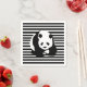 Dons de declaração, acessórios e decoração doméstica com panda gigante e listras pretas e brancas.