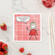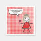 Bonita figura de palito com vinho tinto em vidro, cabelo, colar de pérolas, e citação sobre fundo de gingham vermelho e branco. O texto é editável.