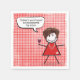 Bonita figura de palito com vinho tinto em vidro, cabelo, colar de pérolas, e citação sobre fundo de gingham vermelho e branco. O texto é editável.
