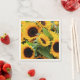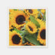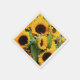 Vocês vão adorar estes corajosos e belos guardanapos de papel com fotos a cores impressionantes de cheio de girassóis brilhantes e corajosos em amarelo, marrom e preto com folhas verdes. Imagem a cores em guardanapos brancos ou nódulos e sua escolha de estilo de guardanapo cunhado ou padrão.
