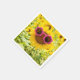 Óculos de sol cor-de-rosa no girassol no campo de girassol.