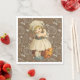 Halloween paper napkins with a little girl in old-fashioned dress, carving an apple and throwing the peal over her shoulder. This was a game played by children. The apple peal was to fall indicating the initials or name of their future betrothed.