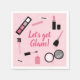 Vamos get glam é um guardanapo de aniversário divertido para as meninas que se interessam por maquiagem e se vestindo. Batom, pincel e esmalte em cor-de-rosa cinza serão um tema divertido para qualquer festa.