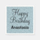 Menina personalizada e guardanapo Feliz de Aniversário com um fundo azul-claro de brilho cintilante e elegante escrevendo preto. Você pode adicionar facilmente o nome de sua escolha e alterar a cor e a fonte do nome usando a opção personalizar!