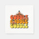 Design de Ação de Graças brilhante e colorido com "gobble gobble gobble" em tipografia retrógrada e cores com o peru saindo do texto.