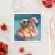 Guardanapo De Papel Golden Retriever Floating On a Flamingo Pool Toy