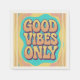 Fun quote text groovy 70s style typography with text good vibes only design.