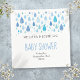 Gotas de chuva azuis caem em direção aos seus detalhes personalizados neste guardanapo fofo de chá de bebê, chá de casais ou revelação de gênero. Projetado por Thisisnotme©
