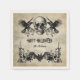 Os guardanapos góticos do Halloween no estilo vintage com crânio, ravens, rosas pretos, morcegos e velas para lhe dar uma atmosfera assustadora. Textura de papel antiga e texto antigo.