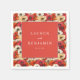 This vibrant and elegant design features a rich floral motif with bold red, orange, and cream flowers creating a lively border around a central coral square. The typography is clean and sophisticated, adding an air of timeless charm to the overall look. Perfect for a spring or summer wedding, this design exudes warmth and joy, making it ideal for celebrating special moments like weddings. Its customizable text area allows you to personalize it further, ensuring it fits seamlessly into your unique celebration.
