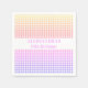 Adicione um toque pessoal e encantador à sua celebração com este guardanapo de gingham bonito gradiente pastel, perfeito para chás de fraldas, festas de aniversário ou qualquer evento especial. A mistura suave de cor rosa, amarelo, coral e lavanda cria um padrão lúdico e atraente de gingham. Com uma banda branca personalizável no centro, você pode personalizá-la com mensagens especiais como "Chá de fraldas de Alessandra" ou "primeiro aniversario de Jessica". Estes guardanapos são a forma perfeita de acrescentar estilo e individualidade à sua celebração, fazer-os de uma escolha ideal para qualquer ocasião festiva.