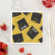 Guardanapos criativos do partido formando com bonés de formatura pretos e dourados em fundo amarelo. Para personalizar o texto de edição para adicionar seu nome e ano de classe de mais velho.