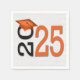 Guardanapo De Papel Graduação 2025 Laranja e Preto Sobre Madeira
