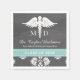 Estilo de quadro bonito e russo damask lace papel de festa de formatura da escola médica guardanapo com um caduceus flanqueado pelas letras MD no estilo trabalho de arte e um aqua azul-claro impresso e um design de fita adesiva branca. Personalize-o com o nome do formando, nome da escola de medicina e ano de aula neste médico, cirurgião e assistente médico-assistente. Trabalho de arte © Chrissy H. Studios, LLC. Todos os direitos reservados.