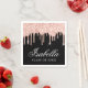 Trendy Glitter Drip Napkins com Nome de Formando Personalizado - Adicione um toque de vidro à sua festa de formatura com nome personalizado e guardanapos de ano de classe. Se você quiser alterar a fonte do script de caligrafia do nome para outra fonte ou alterar o plano de fundo preto para outra cor, clique no botão personalizar.