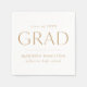 Os guardanapos de graduação na moda com "Formando", apresentados em letras douradas modernas, com fundo branco. Personalize os guardanapos de papel da graduação moderna com o nome do formando, o nome da escola e o ano de graduação.