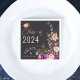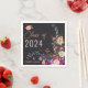 Classe de 2024! Elegante ilustração das flores modernas do primavera de verão com bonito flores silvestres e guardanapos de graduação com escrita de pincel com uma tipografia caligráfica moderna com flores vermelhas, roxas, rosa, terracotta em fundo de cinza escuro