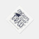 Os guardanapos de papel festa de formatura moderno, personalizados e personalizados que contêm CONGRATOS FORMANDO em tipografia de caligrafia com pincel manuscrita, com nome de formando ou outro texto personalizado e boné de formatura ou placa-mãe na sua escolha de cores (mostrados em azul marinho e prata contra um fundo branco editável). OPÇÕES: A amostra é mostrada no tamanho do coquetel branco de 4,75x4,75"—outros tamanhos e cores do guardanapo estão disponíveis na página de pedidos. ASSISTÊNCIA: para obter ajuda com a modificação/personalização do design, alteração de cor, transferência do design para outro produto ou, se você quiser coordenar itens, entre em contato com o designer ANTES DE ENCOMENDAR através da guia MENSAGEM de bate-papo Zazzle ou por e-mail em makeitaboutyoustore@gmail.com.