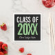 Os guardanapos de papel festa de formatura moderno e preto em branco e verde sobre fundo preto. Personalize-o com o seu ano de graduação e nome. Use as ferramentas de design para escolher qualquer cor de fundo, alterar o texto, as fontes e as cores para criar uma única de um tipo design. Outras cores disponíveis. Coordenado para a coleção "Modern Bold Graduation"