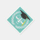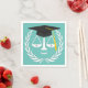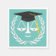 Os guardanapos de festa de formatura da faculdade de direito criativo, com escalas únicas de justiça personificadas vestindo um boné preto e formando de ouro.
