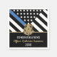 Este design apresenta uma bandeira da polícia com listras pretas e brancas, e uma fina faixa azul de linha também. Um excelente de dizer parabéns ao novo formando da academia de polícia. Personalize com o nome do polícia graduado em ouro. Celebre este marco em estilo!