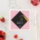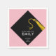 Guardanapos criativos para festa de graduação com capa de graduação preta e dourada em fundo rosa. Para personalizar, edite o texto para adicionar o nome e o ano da turma de formandos.