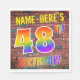 A frente deste design de guardanapo de papel, fascinante, divertido e vibrante, com tema de aniversário apresenta um nome personalizado, e a mensagem "48º ANIVERSÁRIO!" com letras que têm um espectro multicolorido do arco-íris inspirado em um padrão de gradiente inspirado na parede de tijolos. O estilo é inspirado pelo do grafite ou arte de rua desenhada em uma parede. Os guardanapos de papel divertidos como este podem ser usados em uma festa de aniversário sendo realizada para homenagear alguém que está comemorando seu 48º aniversário. [~Z0000367]