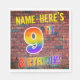A frente desta divertida, vibrante e atraente design de guardanapo de papel, tema de aniversário, apresenta um nome personalizado, e a mensagem "9º ANIVERSÁRIO!" com letras que têm um espectro multicolorido de arco-íris inspirado num padrão de gradiente inspirado na parede de tijolos. O estilo é inspirado pelo estilo de arte de rua ou grafite desenhado em uma parede. Os guardanapos de papel divertidos como este podem ser usados numa festa de aniversário sendo realizada para homenagear alguém que está comemorando seu nono aniversário. [~Z0000367]