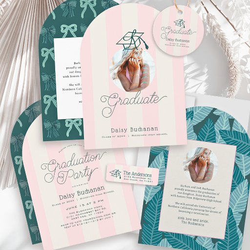 Green Cap Pink Stripes Bow GraduationCriado por Heidi M