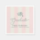 This preppy and coquette graduation paper napkin features a green graduation cap on a cream background with light pink stripes. Personalize it for your needs. You can find matching products at my store.