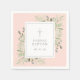 Apresentando delicadas folhas de aquarela sobre fundo rosa-pincelado e um elegante crucifixo prateado, este batismo chic ou guardanapo batizante pode ser personalizado com suas informações especiais sobre eventos. Projetado por Thisnotme©