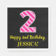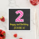 Este divertido design de guardanapo de papel, tema de aniversário, apresenta um grande número "2" com um padrão de rosa claro e cor-de-rosa escuro, juntamente com a mensagem "Happy segundo aniversário", e um nome personalizável. O fundo é preto colorido. Alguns guardanapos de papel personalizados e divertidos como este podem ser usados numa celebração de aniversário que está sendo realizada em homenagem ao segundo aniversário de alguém. [~Z0000380]
