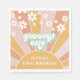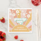 Groovy One Retro inspirou os primeiros guardanapos de aniversário com margaridas do estilo 70 e fontes e cores boho.